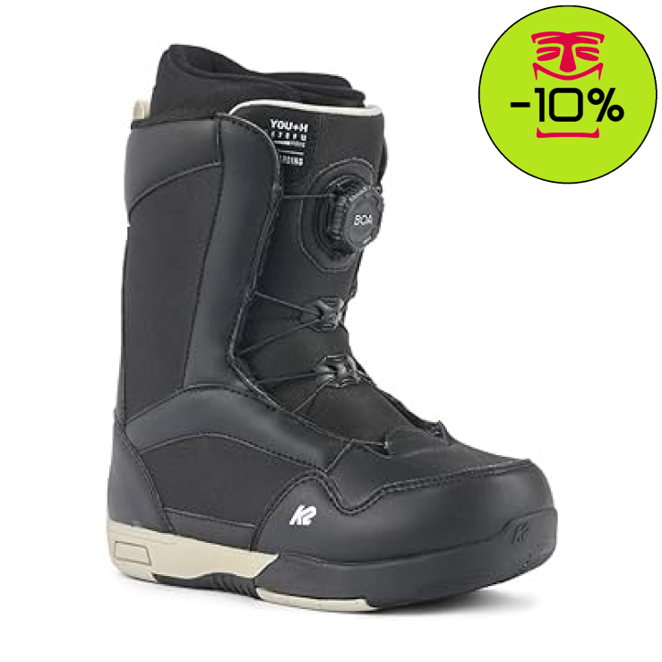 Il nuovissimo scarpone da snowboard K2 YOU+H è una scelta di livello premium per prolungare il tuo tempo in montagna e garantire che il tuo mini rider abbia comfort tutto il giorno, prestazioni premium e calore.