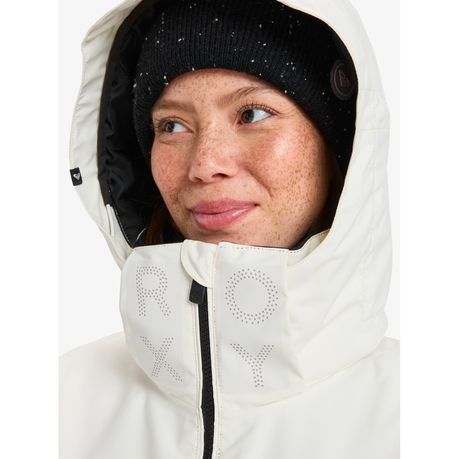 Polsini: Ghette interne elasticizzate ai polsi con foro per il pollice, regolatore dei polsini, mentoniera traforata con logo Roxy